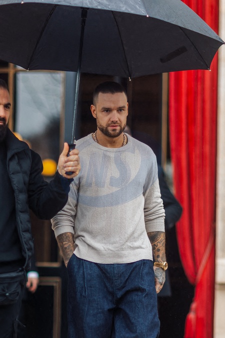 Liam Payne i jego partnerka Kate Cassidy przybywają do hotelu La Réserve podczas pokazu mody damskiej jesień/zima 2024–2025 podczas Tygodnia Mody w Paryżu