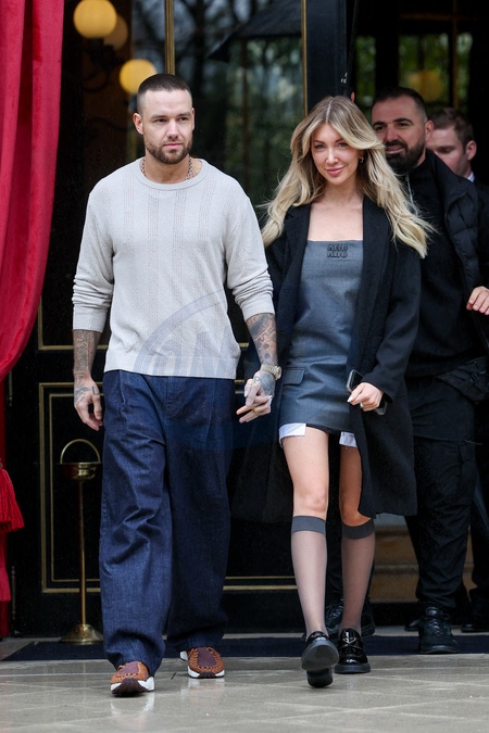 Liam Payne et sa compagne Kate Cassidy à la sortie de l'hôtel La Réserve lors de la mode femme automne / hiver 2024-2025 lors de la Fashion Week de Paris (PFW), à Paris, France, le 2 mars 2024. Liam Payne and his partner Kate Cassidy at the exit of the La Réserve hotel during the fashion Fall / Winter 2024-2025 during the Paris Fashion Week (PFW), in Paris, France, March 2, 2024.