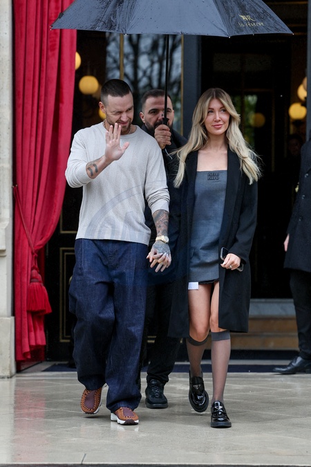 Liam Payne et sa compagne Kate Cassidy à la sortie de l'hôtel La Réserve lors de la mode femme automne / hiver 2024-2025 lors de la Fashion Week de Paris (PFW)