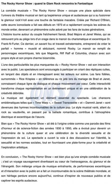 Exclusif - Communiqué de presse - Première du "Rocky horror picture show" à l'occasion des 50 ans de la création du spectacle au Lido 2 Paris à Paris, France. Le 1er mars 2024. © Christophe Clovis / Bestimage Exclusive - No Web - For Germany Call for price - Premiere of the "Rocky Horror Picture show" at Lido 2 in Paris, on the occasion of the 50th anniversary of the creation of the show. On March 1st 2024