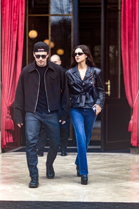 Brooklyn Beckham et sa femme Nicola Peltz à la sortie de l'hôtel La Réserve lors de la mode femme automne / hiver 2024-2025 lors de la Fashion Week de Paris (PFW), à PAris, France, le 2 mars 2024. Brooklyn Beckham and his wife Nicola Peltz at the exit of the La Réserve hotel during the fashion woman fall / winter 2024-2025 during the fashion week in Paris (PFW), in Paris, France, March 2, 2024.
