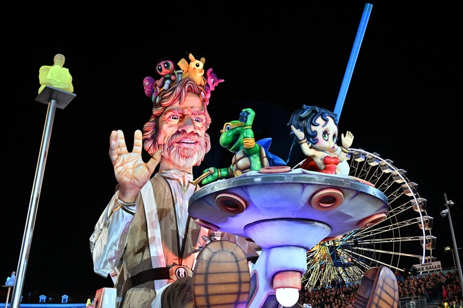 Le char du Roi durant le corso carnavalesque illuminé du Carnaval de Nice 2024 "Roi de la Pop Culture", le 28 février 2024. Tous les corsos sont placés sous haute surveillance depuis déjà quelques années en raison de la menace terroriste. Pour cette nouvelle édition la municipalité a testé des nouveaux portiques de sécurité assistés par l'IA. Ce dispositif, expérimenté à grande échelle les jours de corsos, permet d'éviter les fouilles systématiques des spectateurs et pourrait être déployé à l'occasion des Jeux Olympiques de Paris. Utilisant l'intelligence artificielle, ces portiques, équipés d'une caméra, scrutent les passages sans pour autant «biper» pour un téléphone, des clés, un portefeuille, ou des pièces de monnaie dans les poches. En revanche, s'il s'agit d'une arme (même factice) ou d'un quelconque objet contondant, la machine passe du vert au rouge et l'individu est conduit vers une fouille physique. Reliés à une tablette, les portiques encadrent même en rouge la zone du corps à contrôler. L'agent peut ensuite préciser la nature de l'objet détecté. Avec ces portiques de la société américaine «Evolv technology», branche de «Algiz security», près de 4000 spectateurs à l'heure peuvent entrer dans l'enceinte sans forcément être palpé. C'est les 151 ans du Carnaval et la 139eme édition. L'événement se déroule du 17 février au 3 mars. Le Carnaval de Nice est le 1er carnaval de France et l'un des plus célèbres du monde, avec ceux de Rio et de Venise, attirant chaque année des centaines de milliers de spectateurs. © Bruno Bebert / Bestimage Illustrations of the 139th Nice 2024 Carnival. On February 28th 2024