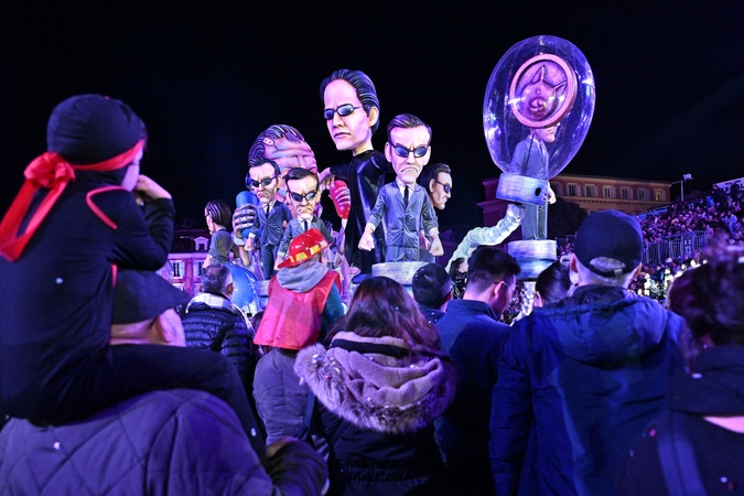 Le char Mat'Risque durant le corso carnavalesque illuminé du Carnaval de Nice 2024 "Roi de la Pop Culture", le 28 février 2024, clin d'oeil au film Matrix avec Keanu Reeves, mais aussi à l'homme d'affaires Elon Musk. Tous les corsos sont placés sous haute surveillance depuis déjà quelques années en raison de la menace terroriste. Pour cette nouvelle édition la municipalité a testé des nouveaux portiques de sécurité assistés par l'IA. Ce dispositif, expérimenté à grande échelle les jours de corsos, permet d'éviter les fouilles systématiques des spectateurs et pourrait être déployé à l'occasion des Jeux Olympiques de Paris. Utilisant l'intelligence artificielle, ces portiques, équipés d'une caméra, scrutent les passages sans pour autant «biper» pour un téléphone, des clés, un portefeuille, ou des pièces de monnaie dans les poches. En revanche, s'il s'agit d'une arme (même factice) ou d'un quelconque objet contondant, la machine passe du vert au rouge et l'individu est conduit vers une fouille physique. Reliés à une tablette, les portiques encadrent même en rouge la zone du corps à contrôler. L'agent peut ensuite préciser la nature de l'objet détecté. Avec ces portiques de la société américaine «Evolv technology», branche de «Algiz security», près de 4000 spectateurs à l'heure peuvent entrer dans l'enceinte sans forcément être palpé. C'est les 151 ans du Carnaval et la 139eme édition. L'événement se déroule du 17 février au 3 mars. Le Carnaval de Nice est le 1er carnaval de France et l'un des plus célèbres du monde, avec ceux de Rio et de Venise, attirant chaque année des centaines de milliers de spectateurs. © Bruno Bebert / Bestimage Illustrations of the 139th Nice 2024 Carnival. On February 28th 2024
