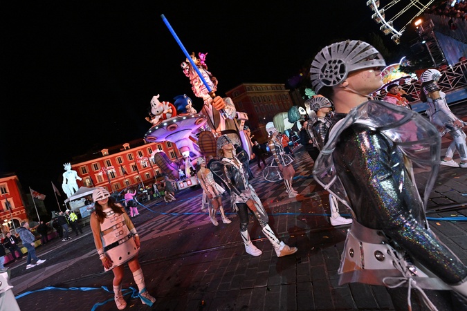 Le char du Roi durant le corso carnavalesque illuminé du Carnaval de Nice 2024 "Roi de la Pop Culture", le 28 février 2024. Tous les corsos sont placés sous haute surveillance depuis déjà quelques années en raison de la menace terroriste. Pour cette nouvelle édition la municipalité a testé des nouveaux portiques de sécurité assistés par l'IA. Ce dispositif, expérimenté à grande échelle les jours de corsos, permet d'éviter les fouilles systématiques des spectateurs et pourrait être déployé à l'occasion des Jeux Olympiques de Paris. Utilisant l'intelligence artificielle, ces portiques, équipés d'une caméra, scrutent les passages sans pour autant «biper» pour un téléphone, des clés, un portefeuille, ou des pièces de monnaie dans les poches. En revanche, s'il s'agit d'une arme (même factice) ou d'un quelconque objet contondant, la machine passe du vert au rouge et l'individu est conduit vers une fouille physique. Reliés à une tablette, les portiques encadrent même en rouge la zone du corps à contrôler. L'agent peut ensuite préciser la nature de l'objet détecté. Avec ces portiques de la société américaine «Evolv technology», branche de «Algiz security», près de 4000 spectateurs à l'heure peuvent entrer dans l'enceinte sans forcément être palpé. C'est les 151 ans du Carnaval et la 139eme édition. L'événement se déroule du 17 février au 3 mars. Le Carnaval de Nice est le 1er carnaval de France et l'un des plus célèbres du monde, avec ceux de Rio et de Venise, attirant chaque année des centaines de milliers de spectateurs. © Bruno Bebert / Bestimage Illustrations of the 139th Nice 2024 Carnival. On February 28th 2024