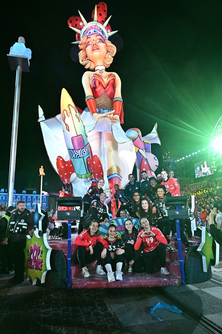 Le char de la Reine durant le corso carnavalesque illuminé du Carnaval de Nice 2024 "Roi de la Pop Culture", le 28 février 2024. Tous les corsos sont placés sous haute surveillance depuis déjà quelques années en raison de la menace terroriste. Pour cette nouvelle édition la municipalité a testé des nouveaux portiques de sécurité assistés par l'IA. Ce dispositif, expérimenté à grande échelle les jours de corsos, permet d'éviter les fouilles systématiques des spectateurs et pourrait être déployé à l'occasion des Jeux Olympiques de Paris. Utilisant l'intelligence artificielle, ces portiques, équipés d'une caméra, scrutent les passages sans pour autant «biper» pour un téléphone, des clés, un portefeuille, ou des pièces de monnaie dans les poches. En revanche, s'il s'agit d'une arme (même factice) ou d'un quelconque objet contondant, la machine passe du vert au rouge et l'individu est conduit vers une fouille physique. Reliés à une tablette, les portiques encadrent même en rouge la zone du corps à contrôler. L'agent peut ensuite préciser la nature de l'objet détecté. Avec ces portiques de la société américaine «Evolv technology», branche de «Algiz security», près de 4000 spectateurs à l'heure peuvent entrer dans l'enceinte sans forcément être palpé. C'est les 151 ans du Carnaval et la 139eme édition. L'événement se déroule du 17 février au 3 mars. Le Carnaval de Nice est le 1er carnaval de France et l'un des plus célèbres du monde, avec ceux de Rio et de Venise, attirant chaque année des centaines de milliers de spectateurs. © Bruno Bebert / Bestimage Illustrations of the 139th Nice 2024 Carnival. On February 28th 2024