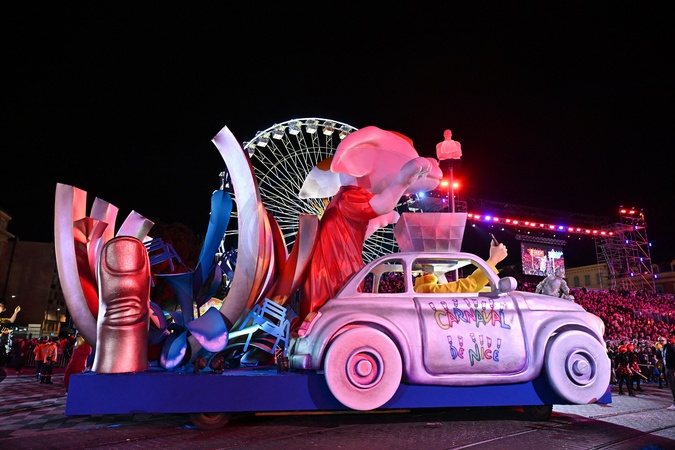 Le char Niss'Art qui réuni quelques sculptures d'artistes niçois comme celle de Stéphane Cipre, Sosno, Bernar Venet, Arman ou Stéphane Bolongaro durant le corso carnavalesque illuminé du Carnaval de Nice 2024 "Roi de la Pop Culture", le 28 février 2024. Tous les corsos sont placés sous haute surveillance depuis déjà quelques années en raison de la menace terroriste. Pour cette nouvelle édition la municipalité a testé des nouveaux portiques de sécurité assistés par l'IA. Ce dispositif, expérimenté à grande échelle les jours de corsos, permet d'éviter les fouilles systématiques des spectateurs et pourrait être déployé à l'occasion des Jeux Olympiques de Paris. Utilisant l'intelligence artificielle, ces portiques, équipés d'une caméra, scrutent les passages sans pour autant «biper» pour un téléphone, des clés, un portefeuille, ou des pièces de monnaie dans les poches. En revanche, s'il s'agit d'une arme (même factice) ou d'un quelconque objet contondant, la machine passe du vert au rouge et l'individu est conduit vers une fouille physique. Reliés à une tablette, les portiques encadrent même en rouge la zone du corps à contrôler. L'agent peut ensuite préciser la nature de l'objet détecté. Avec ces portiques de la société américaine «Evolv technology», branche de «Algiz security», près de 4000 spectateurs à l'heure peuvent entrer dans l'enceinte sans forcément être palpé. C'est les 151 ans du Carnaval et la 139eme édition. L'événement se déroule du 17 février au 3 mars. Le Carnaval de Nice est le 1er carnaval de France et l'un des plus célèbres du monde, avec ceux de Rio et de Venise, attirant chaque année des centaines de milliers de spectateurs. © Bruno Bebert / Bestimage Illustrations of the 139th Nice 2024 Carnival. On February 28th 2024