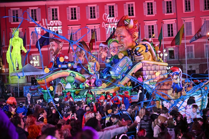 Le char Les Fous du Volant, où l'on retrouve Emmanuel Macron, Volodymyr Zelensky ou encore Poutine durant le corso carnavalesque illuminé du Carnaval de Nice 2024 "Roi de la Pop Culture", le 28 février 2024. Tous les corsos sont placés sous haute surveillance depuis déjà quelques années en raison de la menace terroriste. Pour cette nouvelle édition la municipalité a testé des nouveaux portiques de sécurité assistés par l'IA. Ce dispositif, expérimenté à grande échelle les jours de corsos, permet d'éviter les fouilles systématiques des spectateurs et pourrait être déployé à l'occasion des Jeux Olympiques de Paris. Utilisant l'intelligence artificielle, ces portiques, équipés d'une caméra, scrutent les passages sans pour autant «biper» pour un téléphone, des clés, un portefeuille, ou des pièces de monnaie dans les poches. En revanche, s'il s'agit d'une arme (même factice) ou d'un quelconque objet contondant, la machine passe du vert au rouge et l'individu est conduit vers une fouille physique. Reliés à une tablette, les portiques encadrent même en rouge la zone du corps à contrôler. L'agent peut ensuite préciser la nature de l'objet détecté. Avec ces portiques de la société américaine «Evolv technology», branche de «Algiz security», près de 4000 spectateurs à l'heure peuvent entrer dans l'enceinte sans forcément être palpé. C'est les 151 ans du Carnaval et la 139eme édition. L'événement se déroule du 17 février au 3 mars. Le Carnaval de Nice est le 1er carnaval de France et l'un des plus célèbres du monde, avec ceux de Rio et de Venise, attirant chaque année des centaines de milliers de spectateurs. © Bruno Bebert / Bestimage Illustrations of the 139th Nice 2024 Carnival. On February 28th 2024