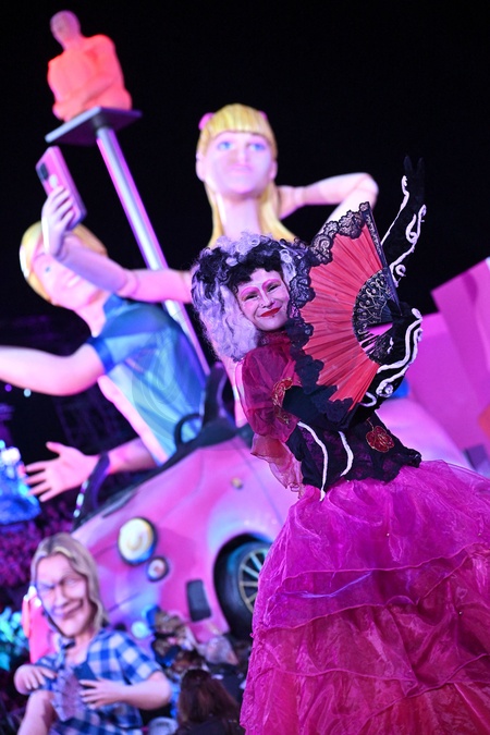 Le char Les Influençables durant le corso carnavalesque illuminé du Carnaval de Nice 2024 "Roi de la Pop Culture", le 28 février 2024, clin d'oeil au film Barbie. Tous les corsos sont placés sous haute surveillance depuis déjà quelques années en raison de la menace terroriste. Pour cette nouvelle édition la municipalité a testé des nouveaux portiques de sécurité assistés par l'IA. Ce dispositif, expérimenté à grande échelle les jours de corsos, permet d'éviter les fouilles systématiques des spectateurs et pourrait être déployé à l'occasion des Jeux Olympiques de Paris. Utilisant l'intelligence artificielle, ces portiques, équipés d'une caméra, scrutent les passages sans pour autant «biper» pour un téléphone, des clés, un portefeuille, ou des pièces de monnaie dans les poches. En revanche, s'il s'agit d'une arme (même factice) ou d'un quelconque objet contondant, la machine passe du vert au rouge et l'individu est conduit vers une fouille physique. Reliés à une tablette, les portiques encadrent même en rouge la zone du corps à contrôler. L'agent peut ensuite préciser la nature de l'objet détecté. Avec ces portiques de la société américaine «Evolv technology», branche de «Algiz security», près de 4000 spectateurs à l'heure peuvent entrer dans l'enceinte sans forcément être palpé. C'est les 151 ans du Carnaval et la 139eme édition. L'événement se déroule du 17 février au 3 mars. Le Carnaval de Nice est le 1er carnaval de France et l'un des plus célèbres du monde, avec ceux de Rio et de Venise, attirant chaque année des centaines de milliers de spectateurs. © Bruno Bebert / Bestimage Illustrations of the 139th Nice 2024 Carnival. On February 28th 2024