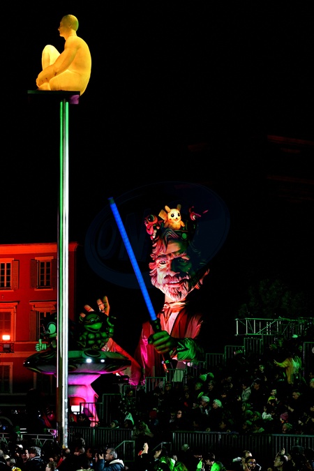 Le char du Roi durant le corso carnavalesque illuminé du Carnaval de Nice 2024 "Roi de la Pop Culture", le 28 février 2024. Tous les corsos sont placés sous haute surveillance depuis déjà quelques années en raison de la menace terroriste. Pour cette nouvelle édition la municipalité a testé des nouveaux portiques de sécurité assistés par l'IA. Ce dispositif, expérimenté à grande échelle les jours de corsos, permet d'éviter les fouilles systématiques des spectateurs et pourrait être déployé à l'occasion des Jeux Olympiques de Paris. Utilisant l'intelligence artificielle, ces portiques, équipés d'une caméra, scrutent les passages sans pour autant «biper» pour un téléphone, des clés, un portefeuille, ou des pièces de monnaie dans les poches. En revanche, s'il s'agit d'une arme (même factice) ou d'un quelconque objet contondant, la machine passe du vert au rouge et l'individu est conduit vers une fouille physique. Reliés à une tablette, les portiques encadrent même en rouge la zone du corps à contrôler. L'agent peut ensuite préciser la nature de l'objet détecté. Avec ces portiques de la société américaine «Evolv technology», branche de «Algiz security», près de 4000 spectateurs à l'heure peuvent entrer dans l'enceinte sans forcément être palpé. C'est les 151 ans du Carnaval et la 139eme édition. L'événement se déroule du 17 février au 3 mars. Le Carnaval de Nice est le 1er carnaval de France et l'un des plus célèbres du monde, avec ceux de Rio et de Venise, attirant chaque année des centaines de milliers de spectateurs. © Bruno Bebert / Bestimage Illustrations of the 139th Nice 2024 Carnival. On February 28th 2024