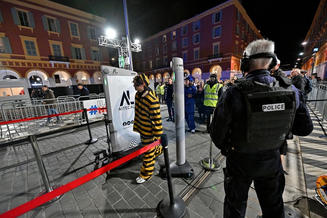 Corso carnavalesque illuminé du Carnaval de Nice 2024 "Roi de la Pop Culture", le 28 février 2024. Tous les corsos sont placés sous haute surveillance depuis déjà quelques années en raison de la menace terroriste. Pour cette nouvelle édition la municipalité a testé des nouveaux portiques de sécurité assistés par l'IA. Ce dispositif, expérimenté à grande échelle les jours de corsos, permet d'éviter les fouilles systématiques des spectateurs et pourrait être déployé à l'occasion des Jeux Olympiques de Paris. Utilisant l'intelligence artificielle, ces portiques, équipés d'une caméra, scrutent les passages sans pour autant «biper» pour un téléphone, des clés, un portefeuille, ou des pièces de monnaie dans les poches. En revanche, s'il s'agit d'une arme (même factice) ou d'un quelconque objet contondant, la machine passe du vert au rouge et l'individu est conduit vers une fouille physique. Reliés à une tablette, les portiques encadrent même en rouge la zone du corps à contrôler. L'agent peut ensuite préciser la nature de l'objet détecté. Avec ces portiques de la société américaine «Evolv technology», branche de «Algiz security», près de 4000 spectateurs à l'heure peuvent entrer dans l'enceinte sans forcément être palpé. C'est les 151 ans du Carnaval et la 139eme édition. L'événement se déroule du 17 février au 3 mars. Le Carnaval de Nice est le 1er carnaval de France et l'un des plus célèbres du monde, avec ceux de Rio et de Venise, attirant chaque année des centaines de milliers de spectateurs. © Bruno Bebert / Bestimage Illustrations of the 139th Nice 2024 Carnival. On February 28th 2024
