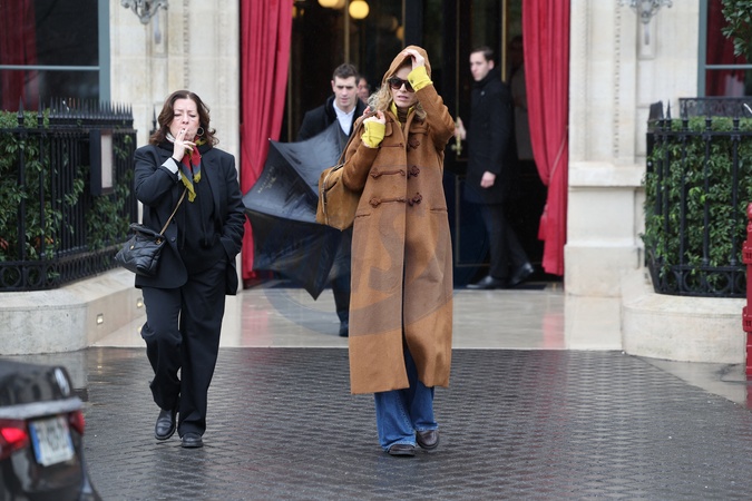 Eva Herzigová opuszcza hotel La Réserve podczas pokazu mody damskiej jesień/zima 2024-2025 podczas Paris Fashion Week (PFW)