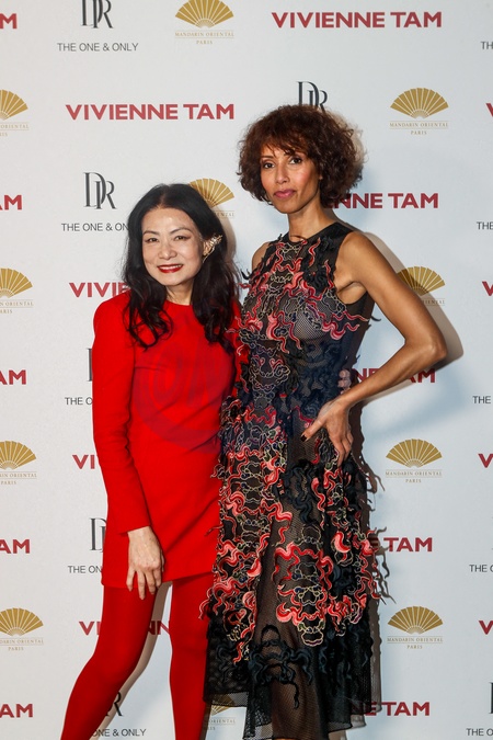 Exclusif - La créatrice Vivienne Tam et Sonia Rolland - Photocall du défilé Vivienne Tam mode femme automne / hiver 2024-2025 lors de la Fashion Week de Paris (PFW), au palais de Tokyo, à Paris, France, le 2 mars 2024. © Christophe Clovis/Bestimage No Web pour la Belgique et la Suisse Exclusive - For Germany Call For Price - Photocall of the Vivienne Tam mode women's fall/winter 2024-2025 show during Paris Fashion Week (PFW), at L'Observatoire de Paris, France, on March 2, 2024.