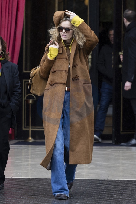 CM - Exclusif - Eva Herzigová à la sortie de l'hôtel La Réserve lors de la mode femme automne / hiver 2024-2025 lors de la Fashion Week de Paris (PFW)