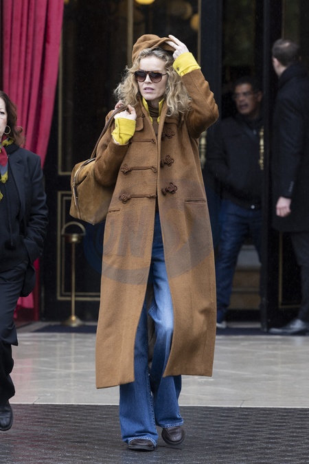 CM - Exclusif - Eva Herzigová à la sortie de l'hôtel La Réserve lors de la mode femme automne / hiver 2024-2025 lors de la Fashion Week de Paris (PFW)