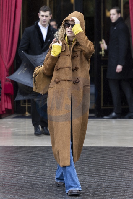 CM - Exclusif - Eva Herzigová à la sortie de l'hôtel La Réserve lors de la mode femme automne / hiver 2024-2025 lors de la Fashion Week de Paris (PFW)