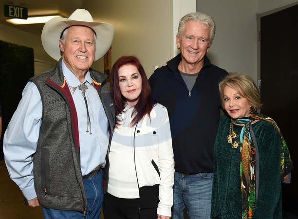 Steve Kanaly, Priscilla Presley, Patrick Duffy and Charlene Tilton at the spring 2024 The Hollywood Show at Marriott Hotel Burbank on March 02, 2024 in Burbank