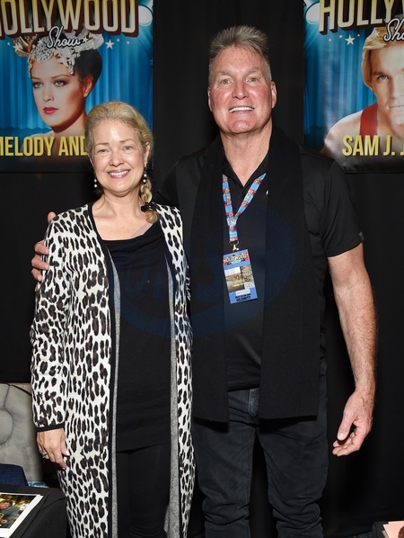 Melody Anderson and Sam J. Jones at the spring 2024 The Hollywood Show at Marriott Hotel Burbank on March 02, 2024 in Burbank