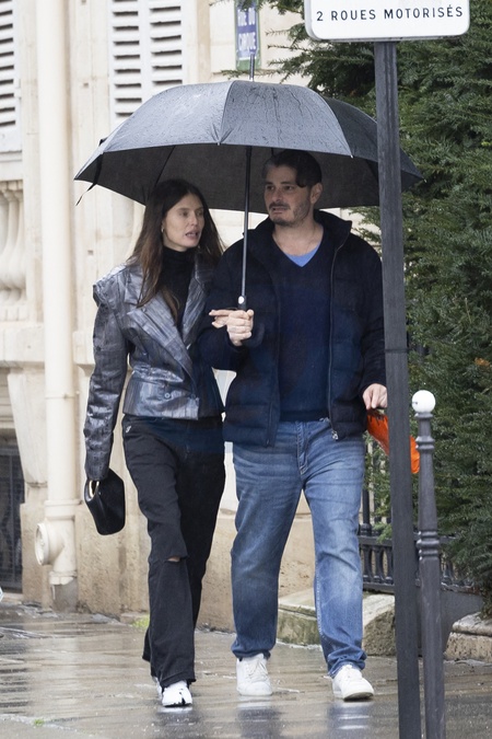 Exclusif - No Web - Bianca Balti et son compagnon Helly Nahmad se promènent sous la pluie dans les rues de Paris. Le 2 mars 2024 Exclusive - No Web - For Germany Call for price - Bianca Balti and his boyfriend Helly Nahmad In Paris. On March 2nd 2024