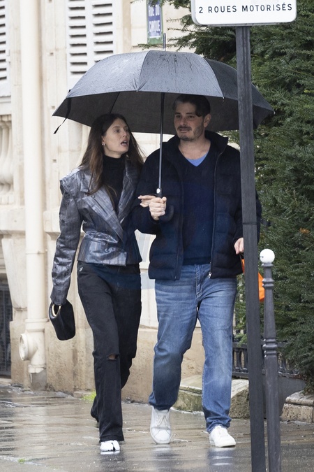 Exclusif - No Web - Bianca Balti et son compagnon Helly Nahmad se promènent sous la pluie dans les rues de Paris. Le 2 mars 2024 Exclusive - No Web - For Germany Call for price - Bianca Balti and his boyfriend Helly Nahmad In Paris. On March 2nd 2024