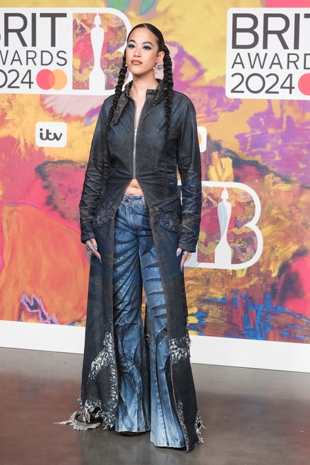 Yasmine Byrne, known professionally as Jazzy poses on the red carpet at the BRITS Awards on Saturday 2 March 2024 at O2 Arena, London. ., Credit:Julie Edwards / Avalon