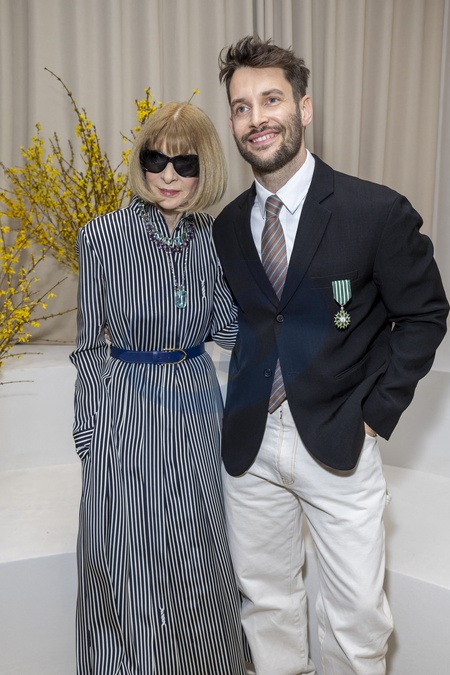 Wręczenie medalu „Kawaler Orderu Sztuki i Literatury” projektantowi Simonowi Porte Jacquemusowi z rąk redaktorki amerykańskiego wydania Vogue Anny Wintour w siedzibie marki Jacquemus w Paryżu