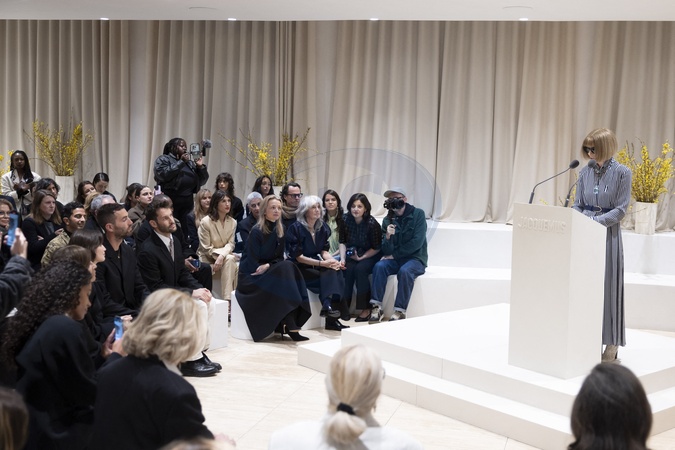 Remise de la médaille du "Chevalier de l’Ordre des Arts et des Lettres" au créateur Simon Porte Jacquemus des mains de la rédactrice de l'édition américaine de Vogue Anna Wintour au siège de la marque Jacquemus à Paris