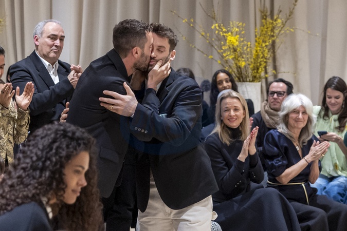 Wręczenie medalu „Kawaler Orderu Sztuki i Literatury” projektantowi Simonowi Porte Jacquemusowi z rąk redaktorki amerykańskiego wydania Vogue Anny Wintour w siedzibie marki Jacquemus w Paryżu