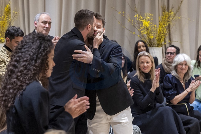 Wręczenie medalu „Kawaler Orderu Sztuki i Literatury” projektantowi Simonowi Porte Jacquemusowi z rąk redaktorki amerykańskiego wydania Vogue Anny Wintour w siedzibie marki Jacquemus w Paryżu