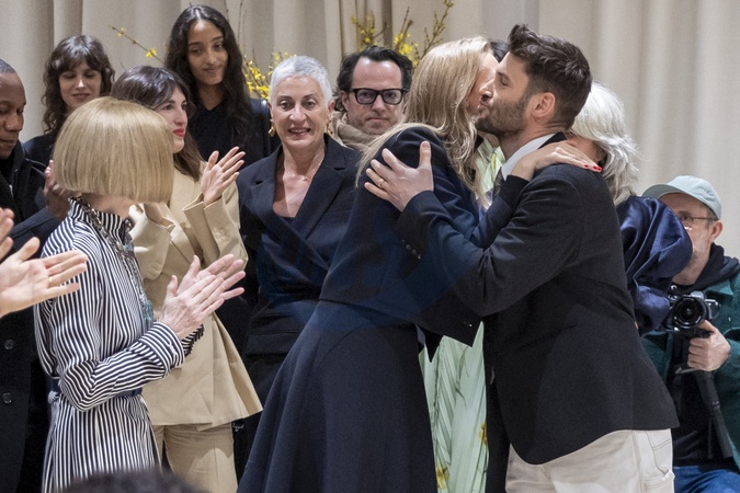 Wręczenie medalu „Kawaler Orderu Sztuki i Literatury” projektantowi Simonowi Porte Jacquemusowi z rąk redaktorki amerykańskiego wydania Vogue Anny Wintour w siedzibie marki Jacquemus w Paryżu
