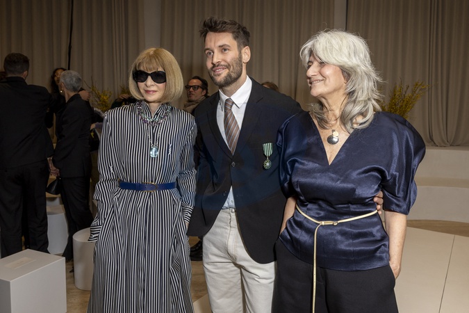 Wręczenie medalu „Kawaler Orderu Sztuki i Literatury” projektantowi Simonowi Porte Jacquemusowi z rąk redaktorki amerykańskiego wydania Vogue Anny Wintour w siedzibie marki Jacquemus w Paryżu