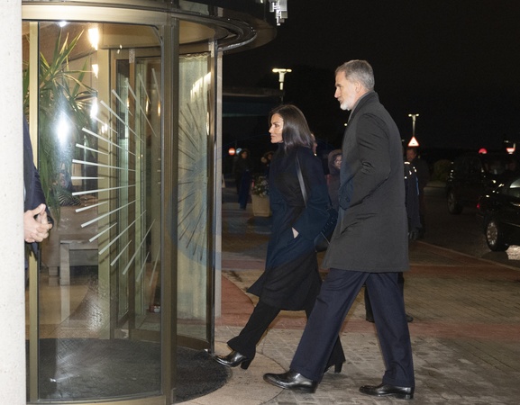 Le roi Felipe VI d'Espagne, la reine Letizia d'Espagne - Obsèques de Fernando Gomez-Acebo (cousin du roi Felipe VI d'Espagne) à Madrid. Le 2 mars 2024 Fernando Gomez-Acebo (King Felipe of Spain first cousin and son of Emerit King Juan Carlos sister Pilar de Borbon) funeral Chapel at La Paz Tanatory. Madrid - March 2, 2024.