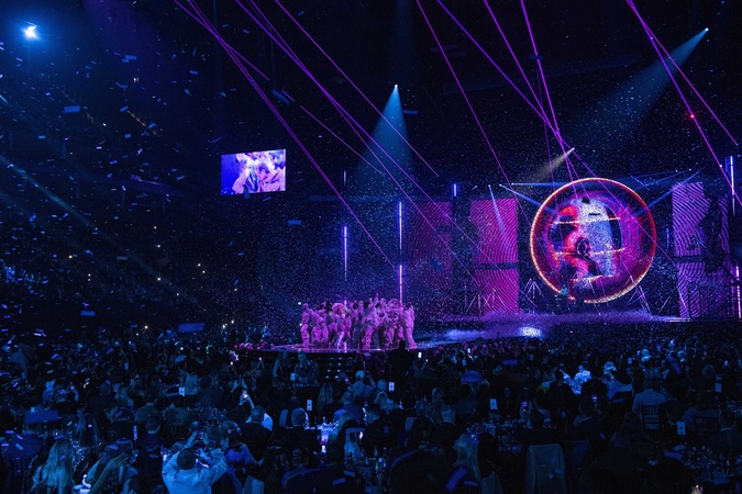 Calvin Harris and Ellie Goulding performing live at the 2024 BRIT awards ceremony, O2 Arena, London, on 2 March 2024