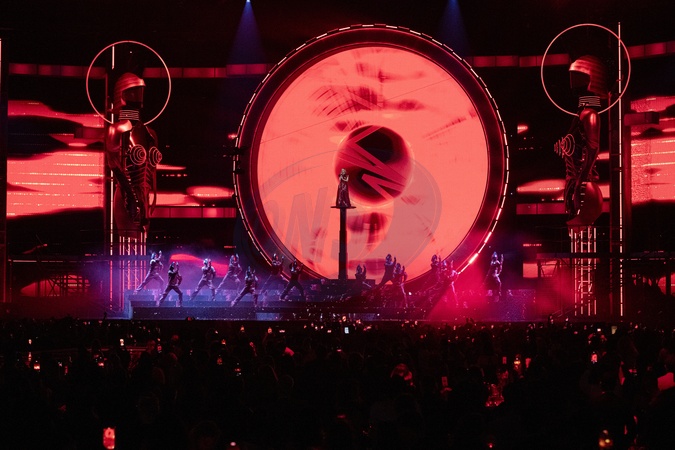 Kylie Minogue performing live at the 2024 BRIT awards ceremony, O2 Arena, London, on 2 March 2024