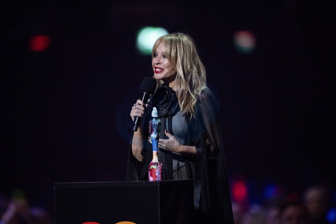 Kylie Minogue being presented the BRIT Award for Global Icon at the 2024 BRIT Awards at The O2 Arena, London on 2 March 2024