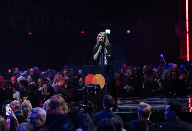 Kylie Minogue being presented the BRIT Award for Global Icon at the 2024 BRIT Awards at The O2 Arena, London on 2 March 2024