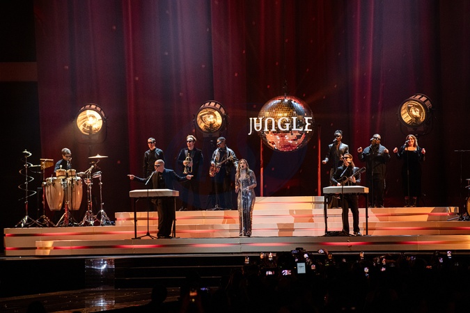 Jungle występ na żywo podczas ceremonii wręczenia nagród BRIT 2024 w O2 Arena w Londynie, 2 marca 2024 r.