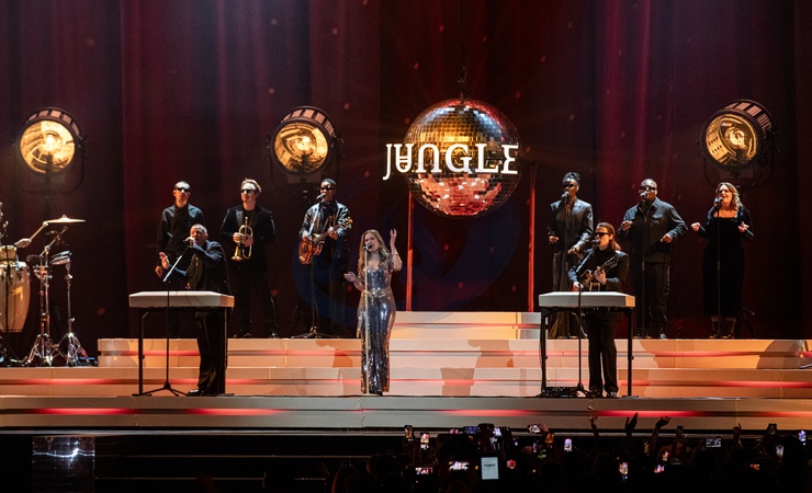 Jungle występ na żywo podczas ceremonii wręczenia nagród BRIT 2024 w O2 Arena w Londynie, 2 marca 2024 r.