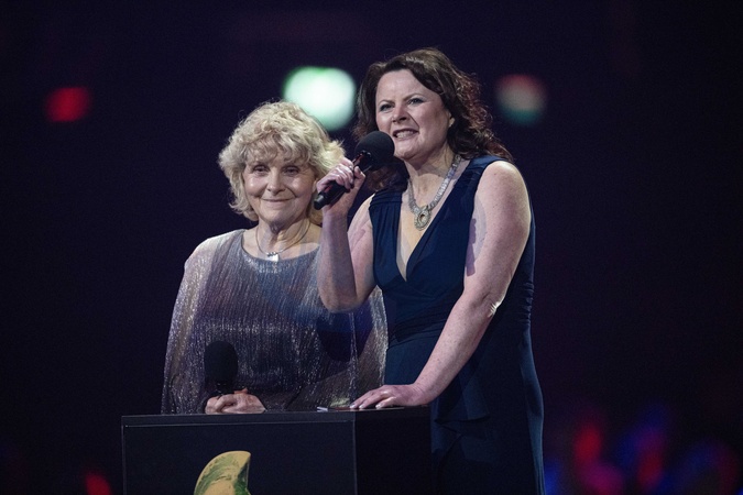 Jo Hamilton and Monica Dolan presenting the BRIT Award for Song of the Year at the 2024 BRIT Awards at The O2 Arena, London on 2 March 2024