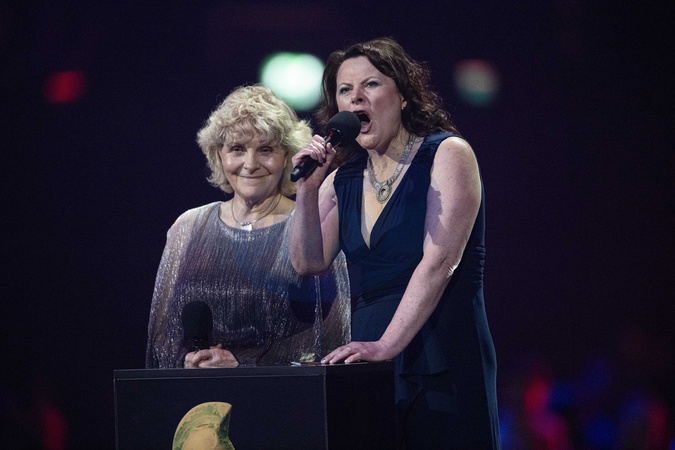 Jo Hamilton and Monica Dolan presenting the BRIT Award for Song of the Year at the 2024 BRIT Awards at The O2 Arena, London on 2 March 2024
