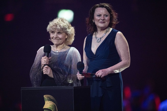 Jo Hamilton and Monica Dolan presenting the BRIT Award for Song of the Year at the 2024 BRIT Awards at The O2 Arena, London on 2 March 2024