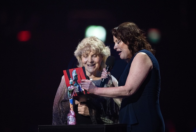 Jo Hamilton and Monica Dolan presenting the BRIT Award for Song of the Year at the 2024 BRIT Awards at The O2 Arena, London on 2 March 2024EDITORIAL USE ONLY, Credit:Dafydd Owen / Avalon