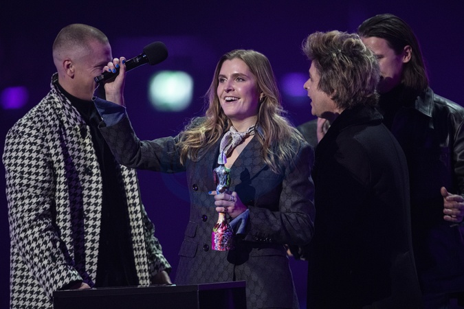 Jungle being presented the BRIT Award for Group of the Year at the 2024 BRIT Awards at The O2 Arena, London on 2 March 2024Jungle are a British electronic music project founded in ‘13 by London-based producers Josh Lloyd-Watson and Tom McFarland - here with singer Lydia Kitto. Jungle have released four studio albums.EDITORIAL USE ONLY, Credit:Dafydd Owen / Avalon