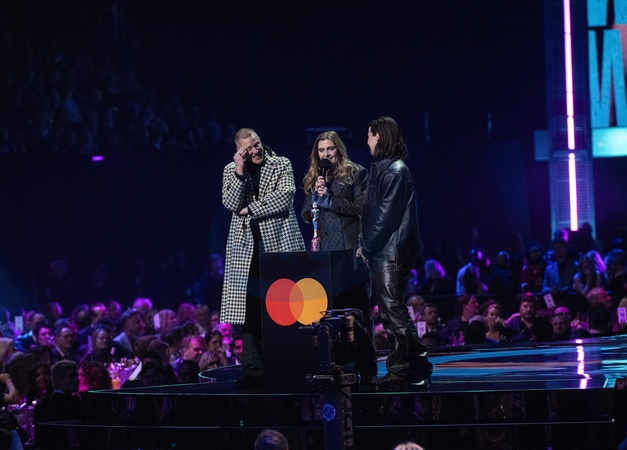 Jungle being presented the BRIT Award for Group of the Year at the 2024 BRIT Awards at The O2 Arena, London on 2 March 2024