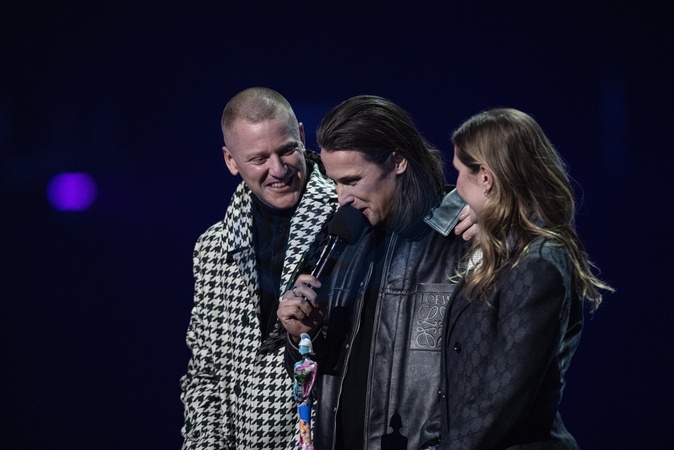 Jungle being presented the BRIT Award for Group of the Year at the 2024 BRIT Awards at The O2 Arena, London on 2 March 2024