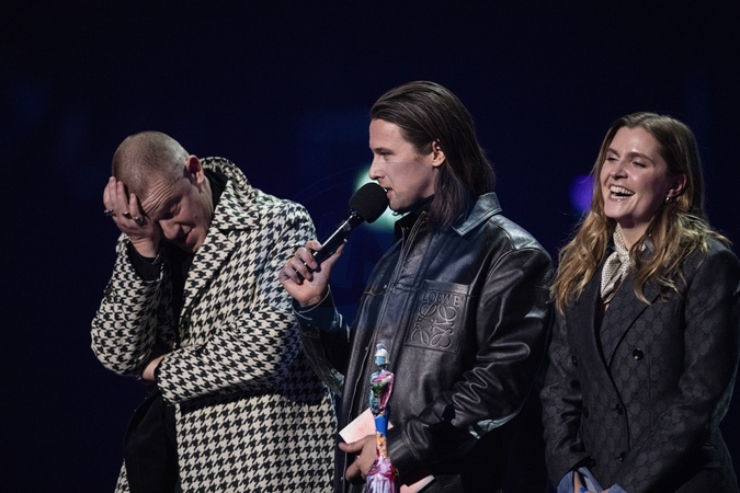 Jungle being presented the BRIT Award for Group of the Year at the 2024 BRIT Awards at The O2 Arena, London on 2 March 2024