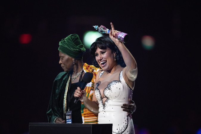 RAYE being presented the BRIT Award for Album of the Year at the 2024 BRIT Awards at The O2 Arena, London on 2 March 2024