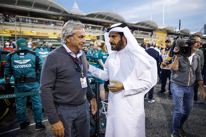 SAINZ Carlos Sr. (spa) and BEN SULAYEM Mohammed (uae), President of the FIA, portrait, starting grid during the Formula 1 Gulf Air Bahrain Grand Prix 2024, 1st round of the 2024 FIA Formula One World Championship from February 29 to March 2, 2024 on the Bahrain International Circuit, in Sakhir, Bahrain. © DPPI/Panoramic/Bestimage