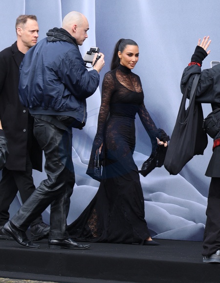 Kim Kardashian pojawia się na pokazie mody damskiej Balenciaga jesień/zima 2024-2025 podczas Tygodnia Mody w Paryżu