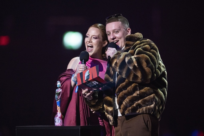 Jess Glynne and Aitch presenting the BRIT Award for R&B Act at the 2024 BRIT Awards at The O2 Arena, London on 2 March 2024Singer Jess Glynne (Jessica Hannah Glynne) and rapper (Aitch) Harrison James Armstrong presenting the award for R&B Act.EDITORIAL USE ONLY, Credit:Dafydd Owen / Avalon