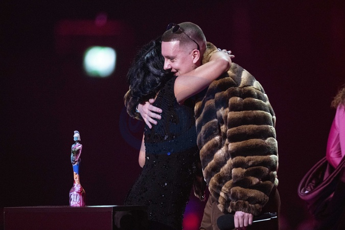 Jess Glynne and Aitch presenting the BRIT Award for R&B Act at the 2024 BRIT Awards at The O2 Arena, London on 2 March 2024